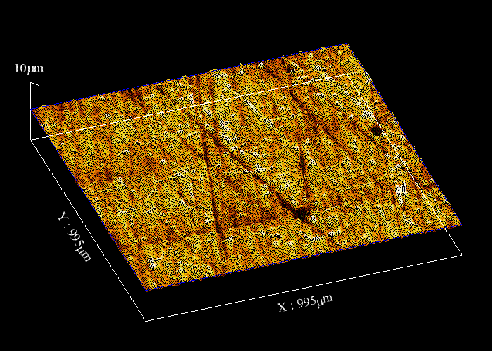 Groud surface A flat surface is machined by sliding a rotating disk on the surface.Grinding marks are seen (anisotropic surface). |